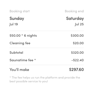 Note, that the booking breakdown automatically renders the cleaning fee