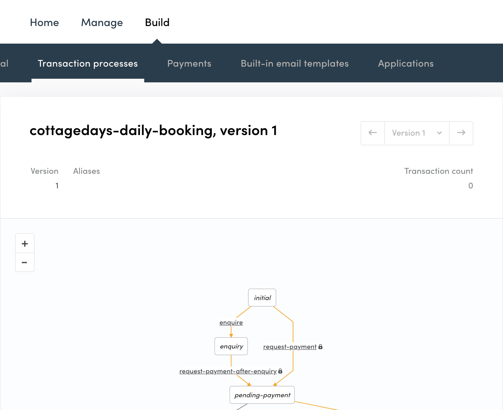 After executing that command, you can go to the Flex Console (Build -> Transaction processes tab) and see that the "cottagedays-daily-booking" process is there.