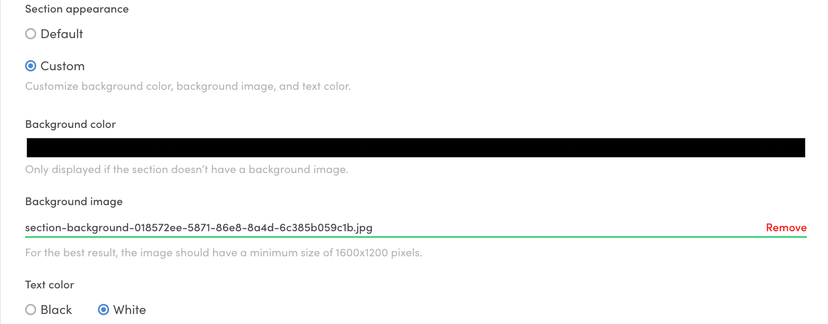 With this image, we also need to switch the text from white to black. To do that, toggle the Text color buttons below the image input.